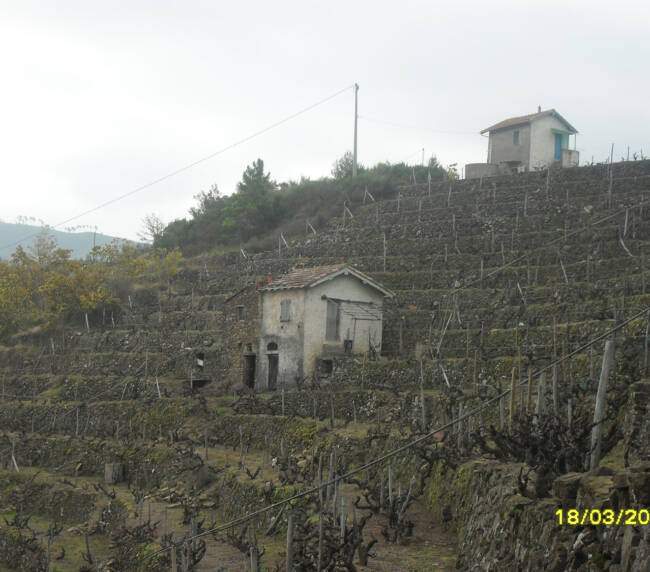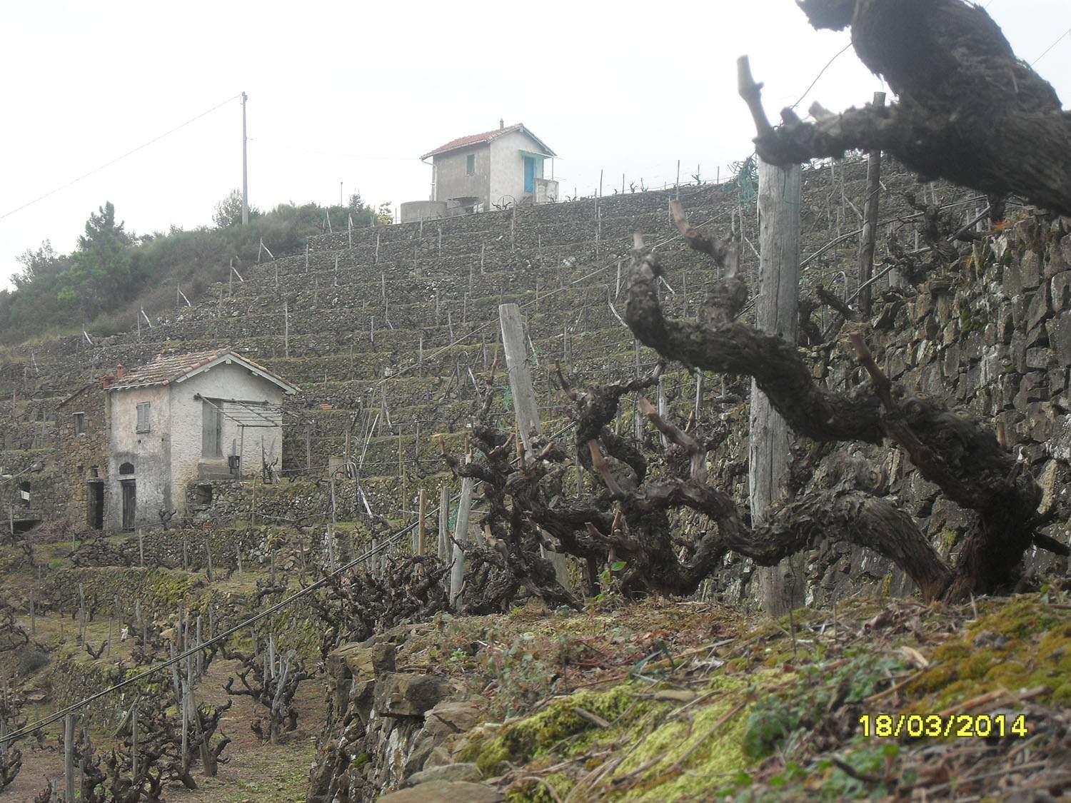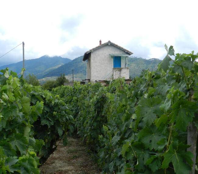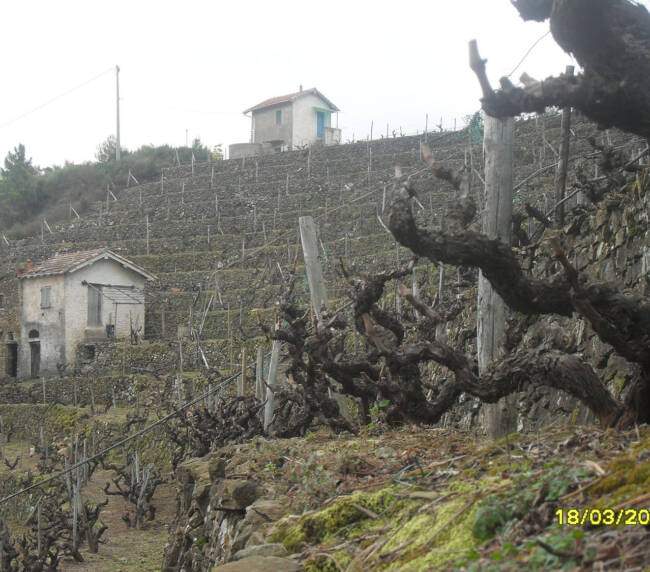 Con i suoi antichi ceppi di “rossese di dolceacqua” sorretti ancora oggi, dalle sue vecchie “scarasse” , pali di sostegno utilizzati normalmente  in vigna.