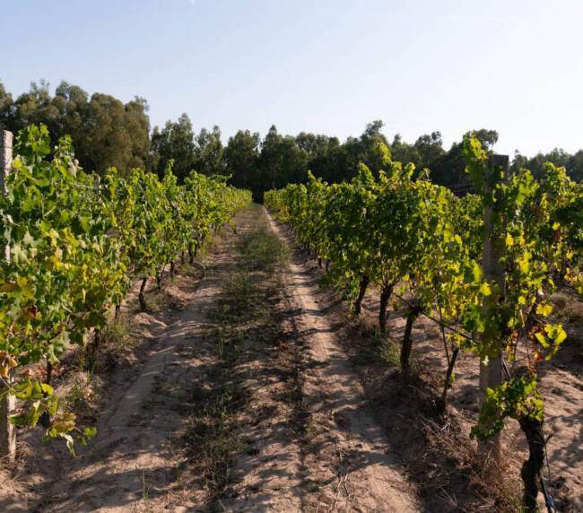 In un contesto così favorevole alla ricerca e alla conservazione del patrimonio dell’isola, il mantenimento laddove risulta possibile del franco di piede è prerogativa imprescindibile. Al momento la cantina produce due vini da vigneti a piede franco: il VRM da uve vermentino provenienti dall’Alto Campidano e il CRG da uve carignano provenienti da vigne di Calasetta. Recentemente è stata presa in gestione una vecchissima vigna di Bovale.