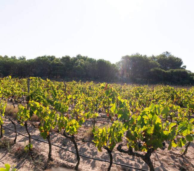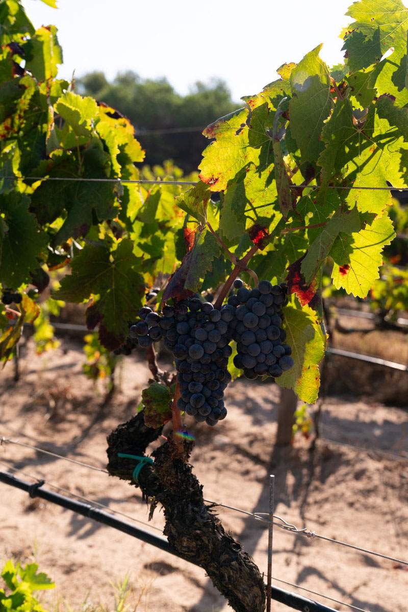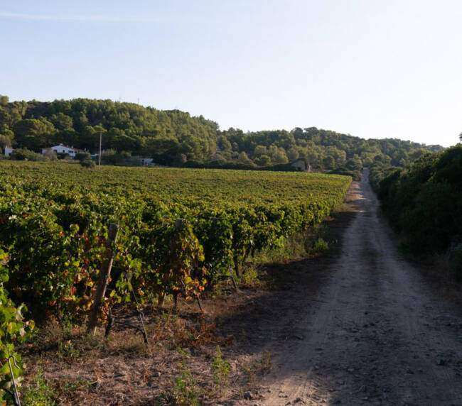 I vigneti si trovano al centro dell’isola, e si distinguono in Vigna Bassa e Vigna Alta, circondati da una rigogliosa macchia mediterranea, soprattutto quello in località Le Tanche. L’azienda salvaguarda procedimenti e metodologie della tradizione con pochissimi interventi in vigna e lavorazioni esclusivamente manuali.