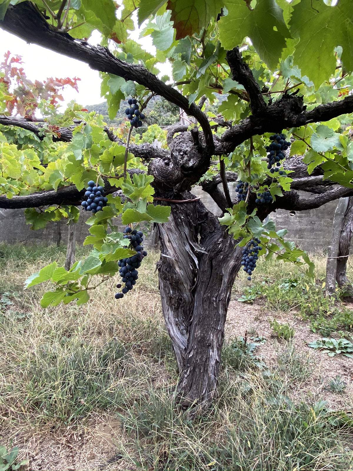 Otto dei quattordici ettari della Tenuta, sono rappresentati da vigneti secolari prefillossera delle cultivar di tintore, aglianico e piedirosso per la produzione del Tramonti rosso riserva “4 Spine” e del Tintore prefillossera “E’ ISS”. Quattro ettari e mezzo, compreso il Cru della “Vigna dei Preti“ sono coltivati a falanghina, biancolella, biancazita, biancatenera, pepella e ginestra per la produzione del Tramonti bianco e del Tramonti bianco riserva “PerEva”.